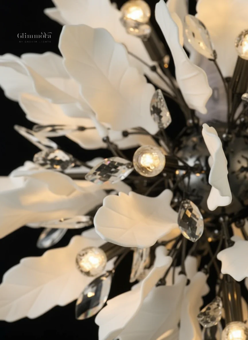 Frozen Flora (Chrome, White) Ceramic Chandelier – Glimmora by Grover Lights