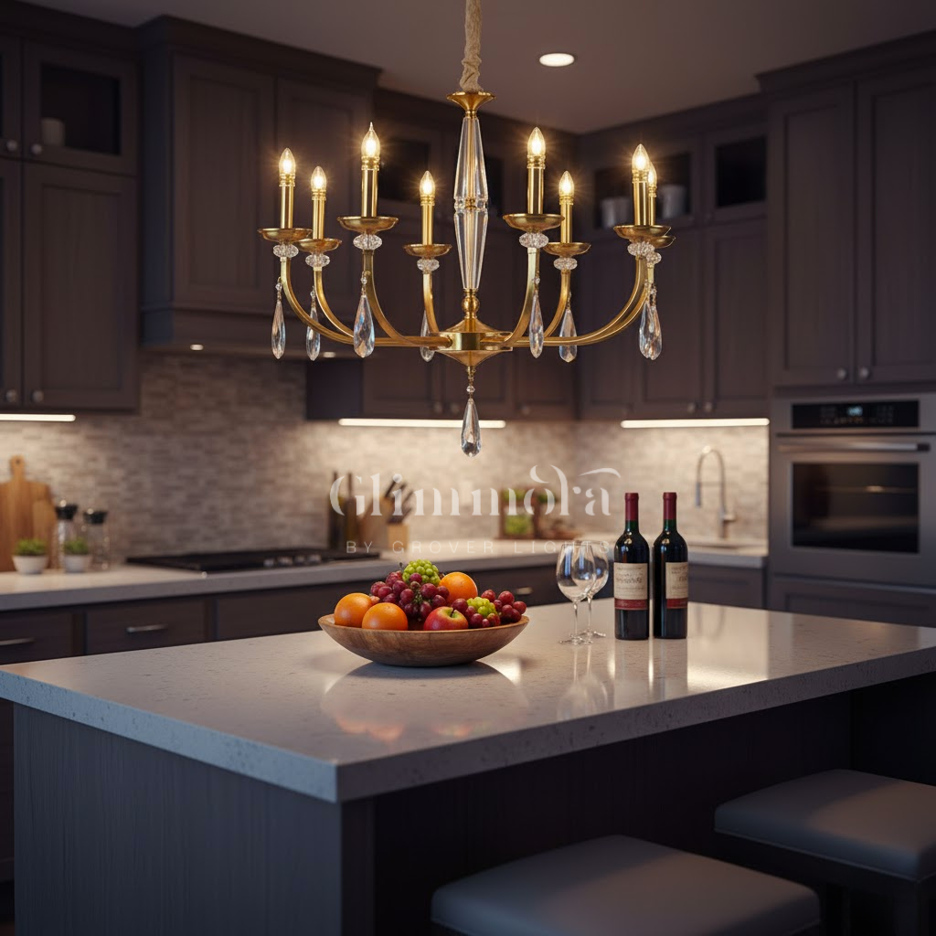 Size: 600mm diameter, 600mm height, with an adjustable chain. Light source : E27 (Lights Not Included) No Of Bulb : 8 Bulbs Body Colours : Antique Brass