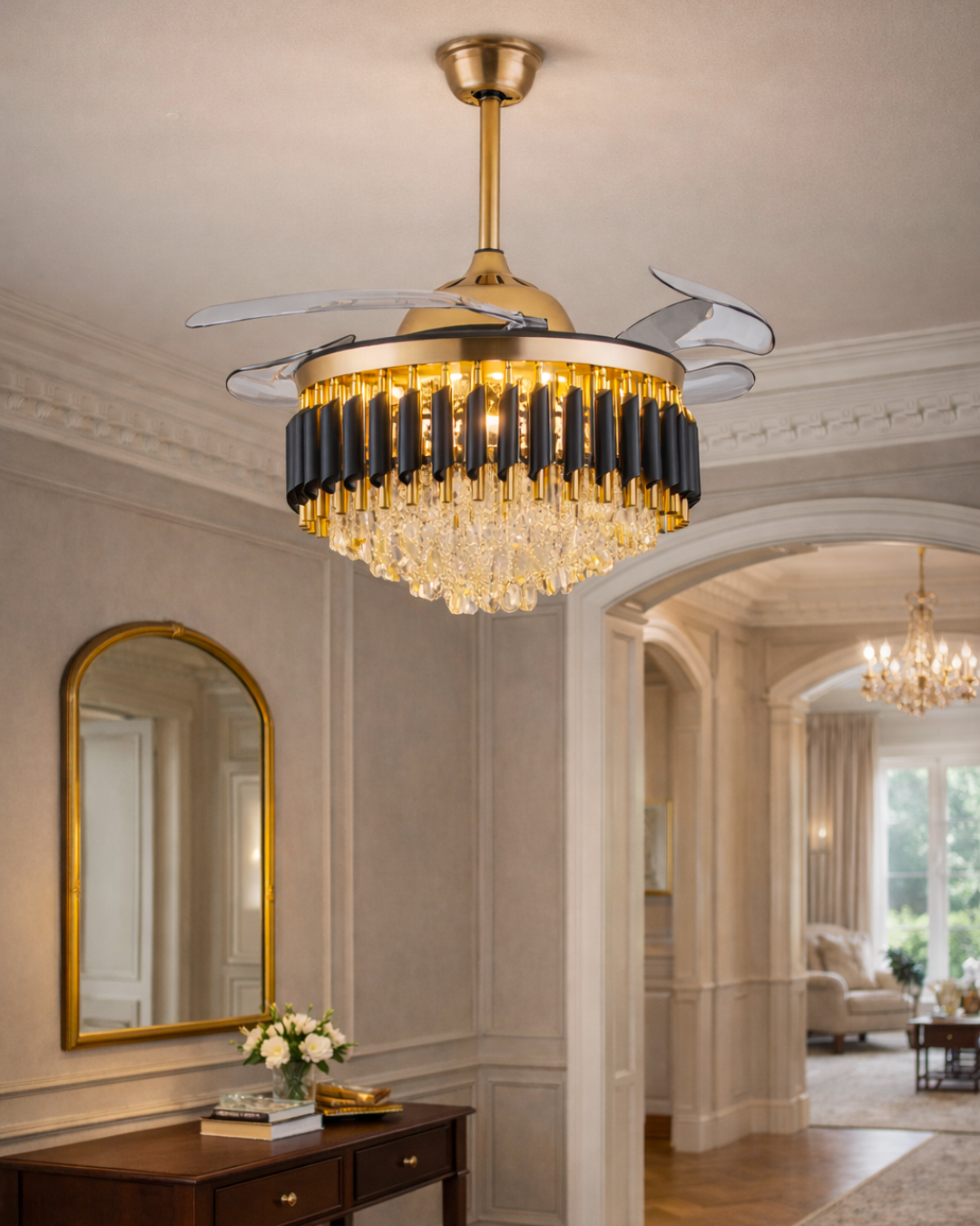 • Unique Style: Modern ceiling fan and crystal chandelier 2 in 1, decorated with K9 crystal makes striking lighting fixtures for any room.