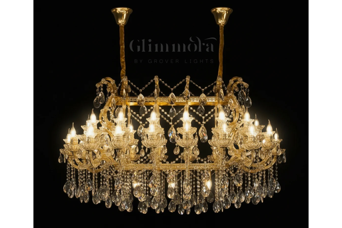 Customers who appreciate opulence, intricate craftsmanship, and crystal-loaded designs are naturally drawn to this piece. It is most preferred as a dining chandelier, where its warm, golden luminance creates an unforgettable ambience above grand dining tables. Yet its presence feels equally captivating in a living room, bedroom, or double-height lobby, depending on the homeowner’s design vision.