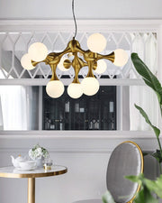 The Modern Orb Cluster Chandelier combines modern design with a classic orb shape, creating a stunning focal point for any room. Its clustered lights provide ample lighting and add a touch of elegance to any space. Elevate your home decor with this unique and stylish chandelier.